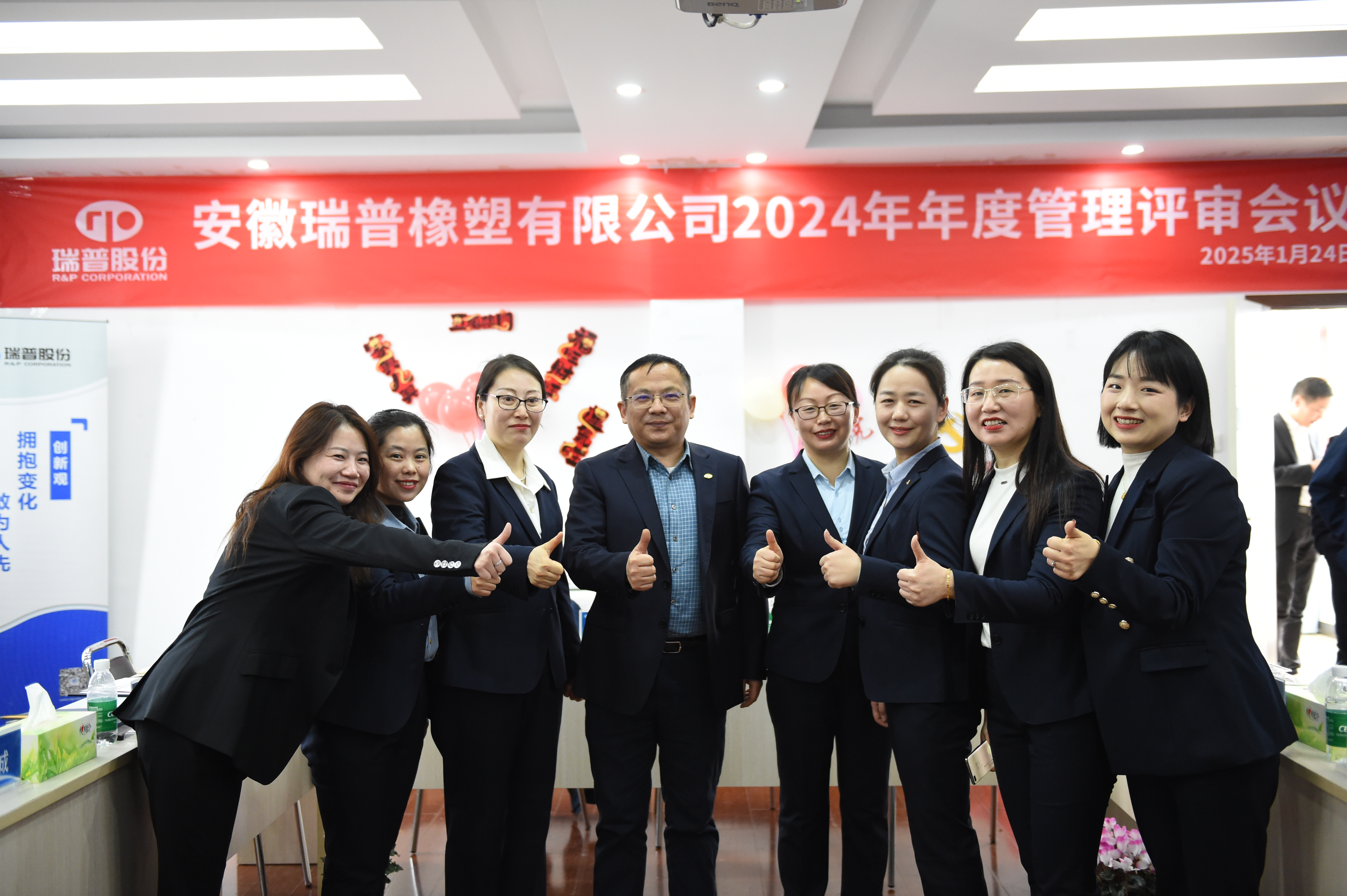 安徽瑞普橡塑有限公司于2025年1月24日上午8時,在寧國公司三樓會議室舉行2024年度管理評審會議。本次會議由集團公司質量部長祝珊珊擔任主持,公司高層管理人員以及各職能部門、子公司負責人共計三十余人出席會議。各職能部門、子公司負責人就2024年度的工作情況進行匯報,并對2025年的工作計劃及提升策略進行規劃。